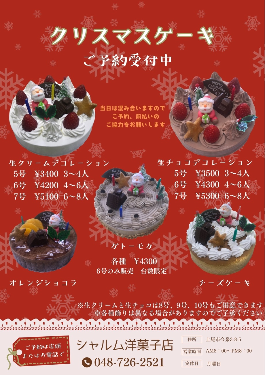 12/10までに6号以上のデコレーションケーキをご予約の方にシャンメリーをプレゼントします。